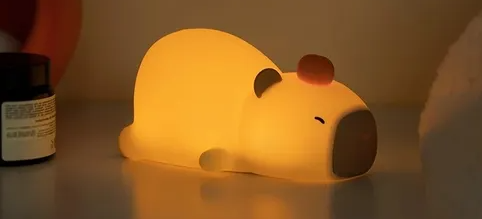 Este velador con forma de capibara combina ternura, seguridad y funcionalidad en un solo producto.